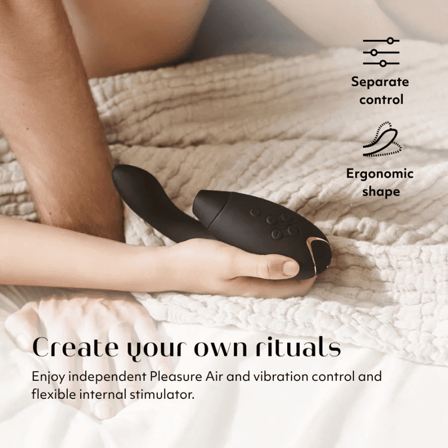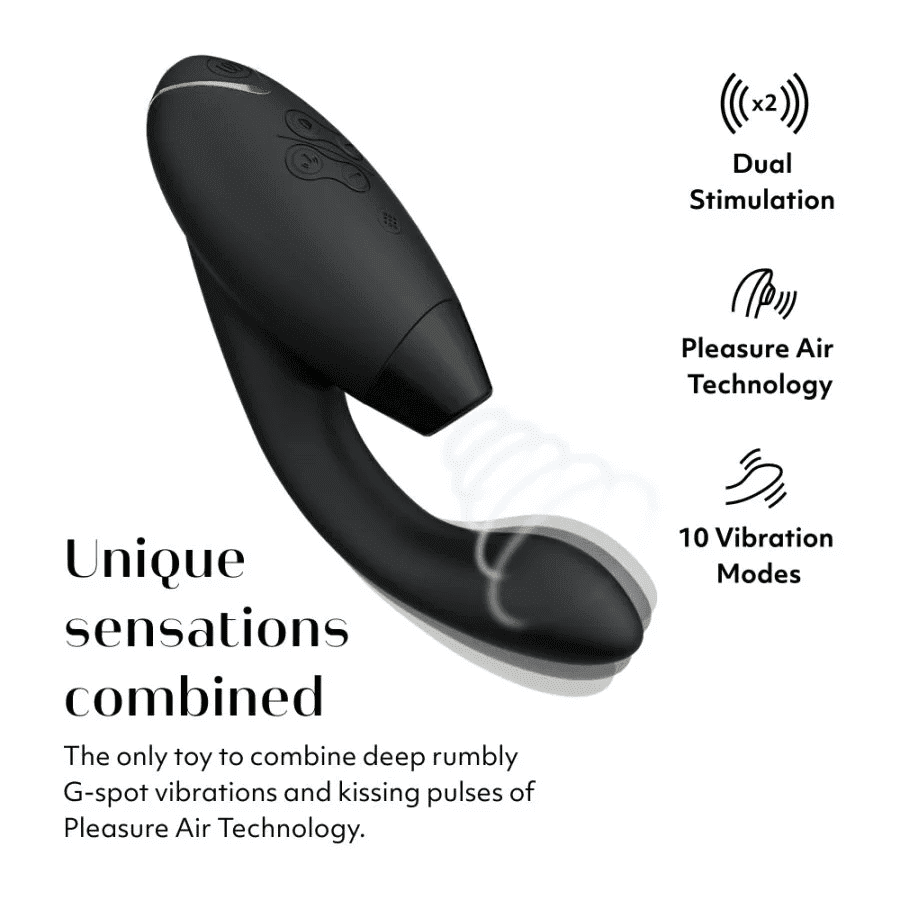 DUO 2 đồng thời nhắm vào điểm G với các rung động ầm ầm sâu và âm vật với kích thích Pleasure Air giống như hút, tạo ra cực khoái pha trộn thỏa mãn sâu sắc.